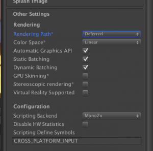 While this post will not get into the specifics of the differences in the rendering pipelines offered in Unity, I will say that when at all possible, use deferred rendering. It’s a much faster system and offers a lot more flexibility when you start getting into effects like post processing tools.
